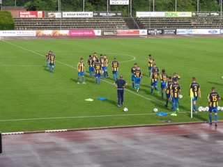 いまは、ドイツ(プロ)サッカーコーチ連盟が借り切ったスタジアムの観客席でコンピューターに向かっているんですよ。そう、まず講演内容をメモっておこうっちゅうわけさ。